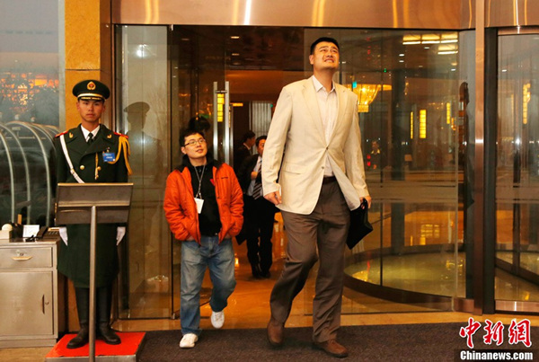 2月28日早上,北京遭遇严重空气污染,刚走出政协委员驻地酒店的全国政协委员姚明抬头看天,皱起眉头。