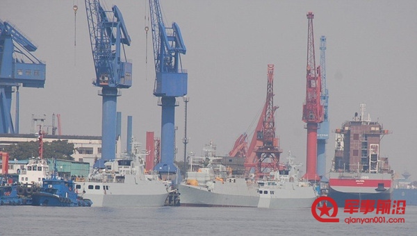 近日,有网友拍摄到了国内某造船厂内同时出现3艘该型护卫舰的场景。出该型护卫舰外,还有多艘军舰正在该船厂内建造。